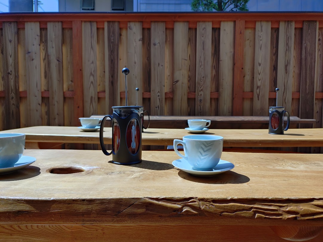 2025/04/27 フレンチプレス 珈琲アウラのデッキテラスでいただくフレンチプレスのコーヒー。 もう日差しが暑いくらい。パラソルが欲しいな。 5月1日オープンだそうです。 2025 Other ブログ一覧へ戻る All
