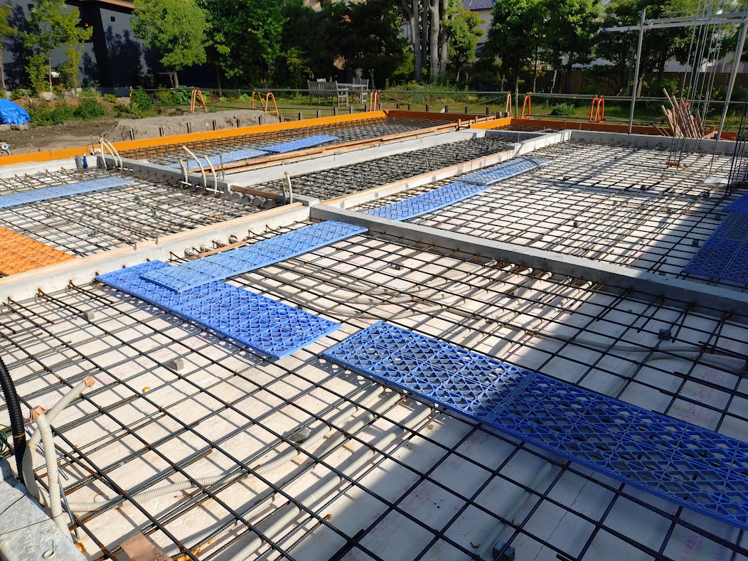 土間スラブ打設前配筋検査。