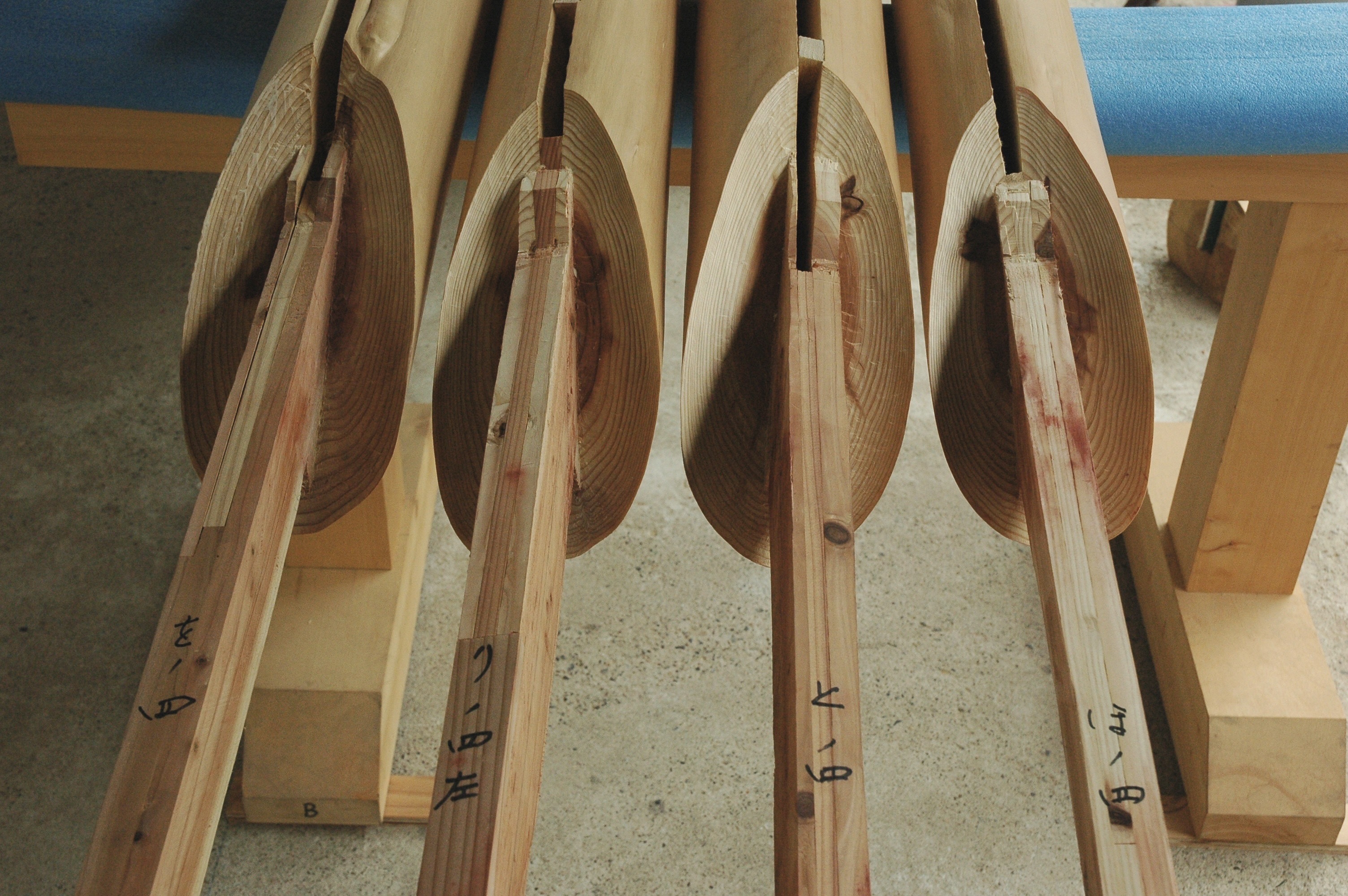 本プロジェクトの「サテライトオフィス」は、磨き丸太を用いたトラス架構が大きな特徴の建築で、大工職人の手仕事による高い技術力が必要不可欠な計画です。