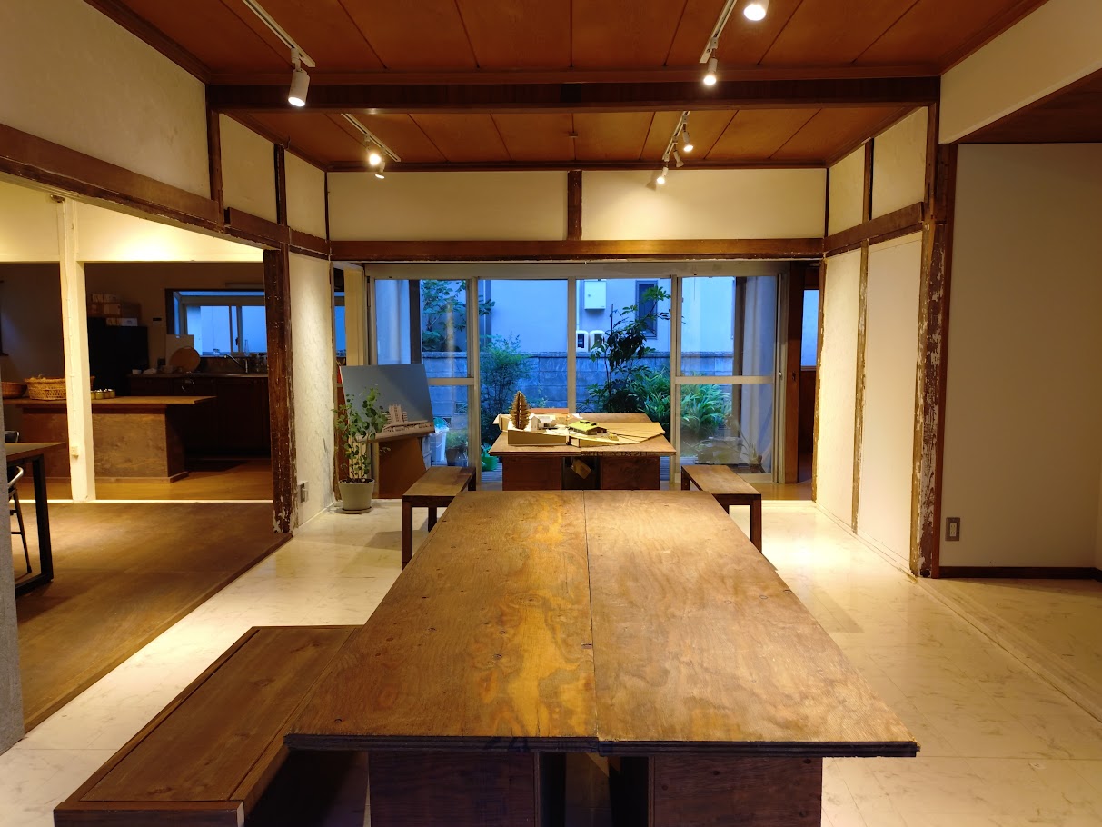 そのお荷物五間バーカウンターが10年の時を経て、ようやく役立つ時が。10周年イベント用にテーブルどうしようかなーと思っていて、ふと五間バーを思い出して脚を切ってみると、テーブルにちょうどいい高さに!