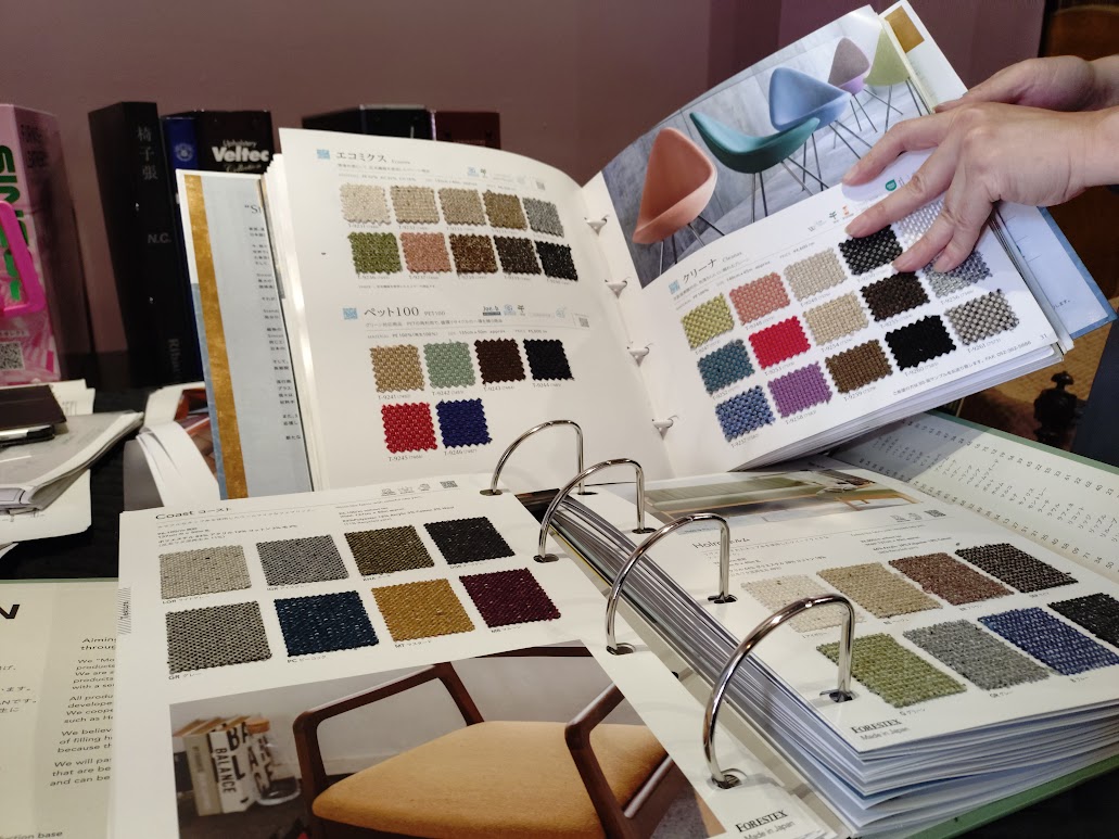 普段、目にしないメーカーのカタログやウレタンの密度と厚さによる座り心地の違いなど、丁寧にレクチャーしていただき、今後の設計に活かせそうでうれしい。