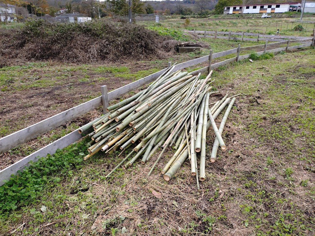 2025/11/02 雪囲い資材調達 ツチクラ住建の西村さんに協力してもらって、雪囲い用の竹を切り出してきました。 加えて、去年は雪の重みで壊れてしまった木柵の補強用の支柱もゲット。 11月前半は少し穏やかな天気になりそうなので、本格的な冬が来る前に冬支度を完了させなければ。 2025 Project ブログ一覧へ戻る All