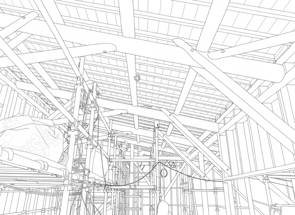 更に、「内部足場を消去して」と頼めば、内部足場を消したパースを生成してくれる。