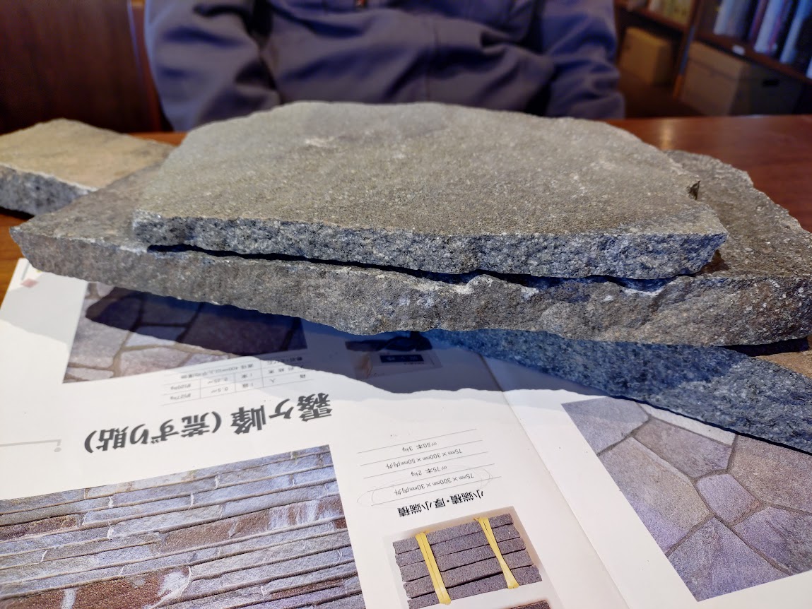 小端積みが、成形されたきれいな寸法の鉄平石だけにならない様に積んで欲しいので、事前にイメージを職人さんと擦り合わせました。