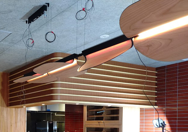 棒に羽が付いたような変わった形の照明器具。