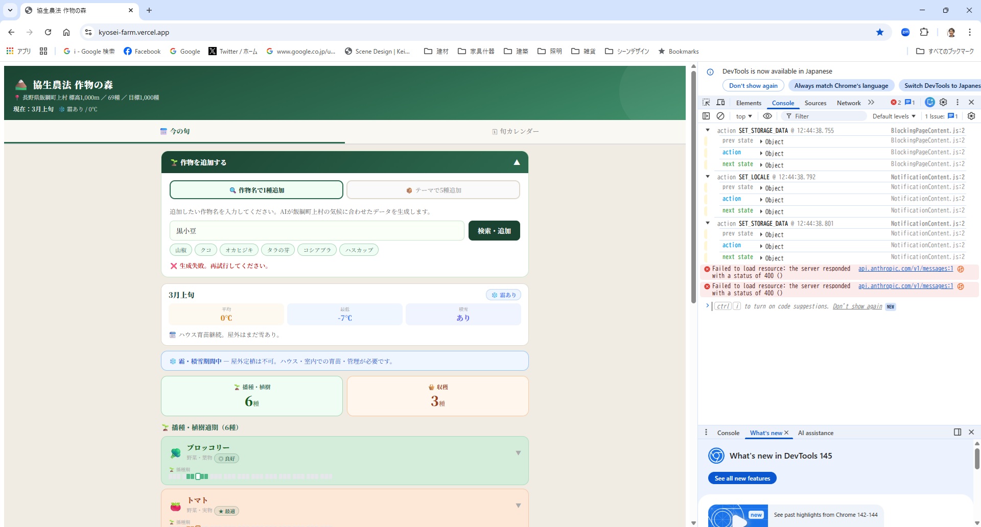 源次ナッツファームで実践している協生農法は、多種多様な作物をつくるので、いつどんなタイミングでどんな作物を植えたらよいのか、お知らせしてくれるカレンダーが欲しいなと思い、AIにアプリをつくってもらっています。