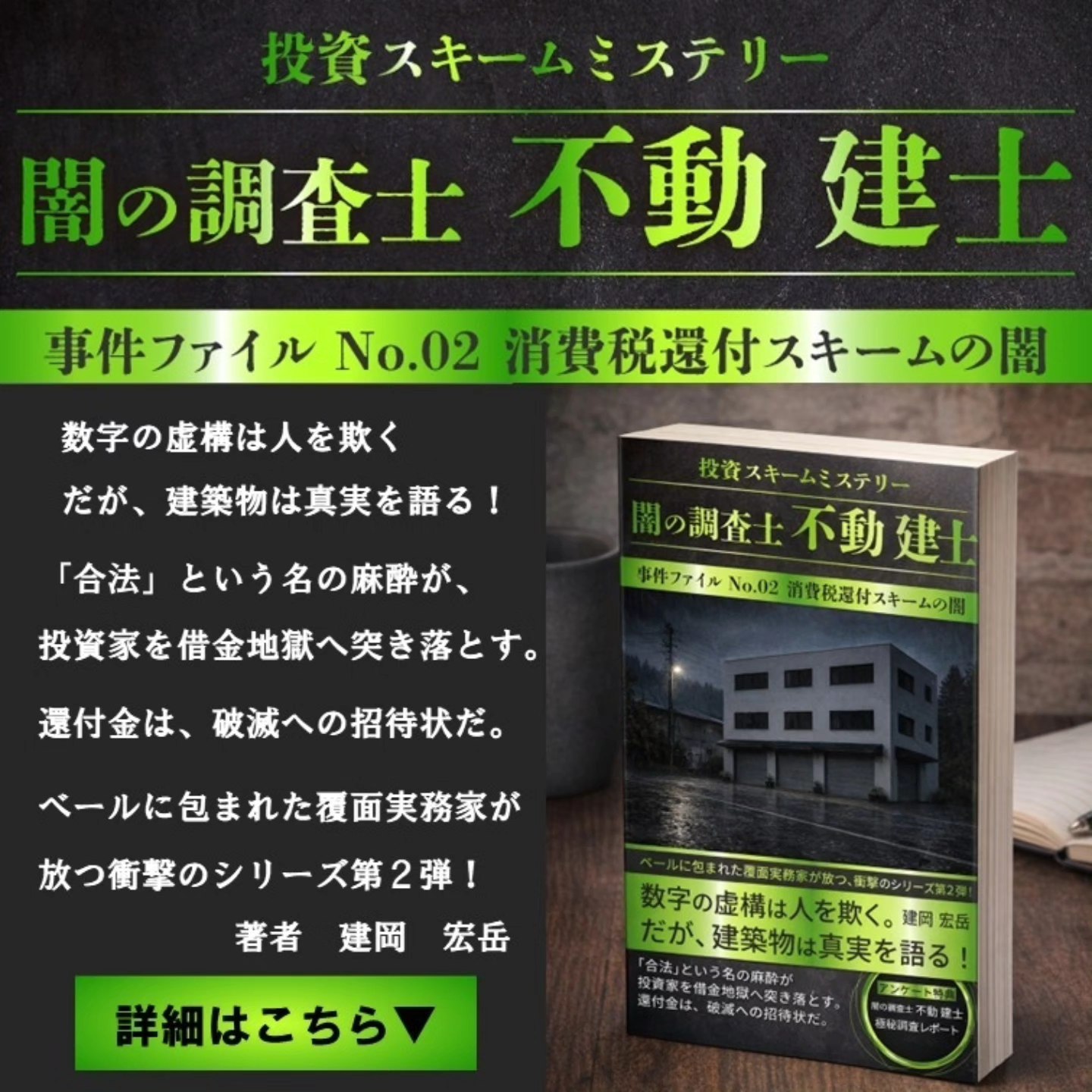 投資スキームミステリー『闇の調査士 不動 建士』シリーズ第2弾が本日発売開始となりました。
